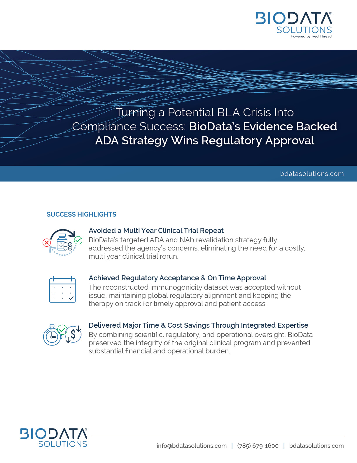 BioData’s targeted ADA and NAb revalidation strategy fully addressed the agency’s concerns, eliminating the need for a costly, multi year clinical trial rerun.